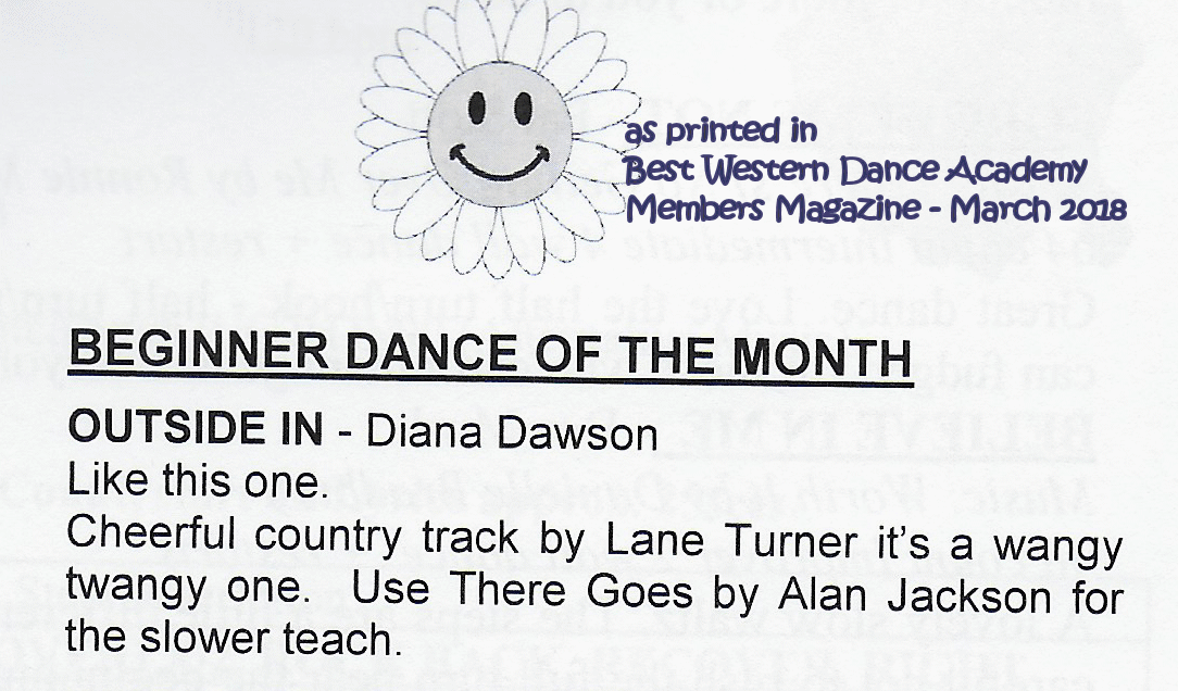 Linedancerweb April 2018 - Outside In reached No2 in their Absolute Beginners Top 50 chart and No 41 in the Main Top 50 Chart